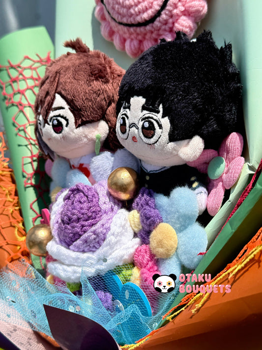 White Haired Daddy and Racist Bestie Anime Plushie Crochet Flower Bouquet