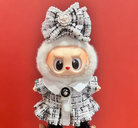 High Class Plaid Dress Fancy Fashion Designer Kawaii Cute Doll Outfit Clothes 17cm