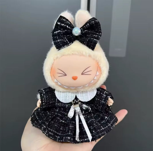 Black and White Plaid Dress Fancy Fashion Designer Kawaii Cute Doll Outfit Clothes 17cm