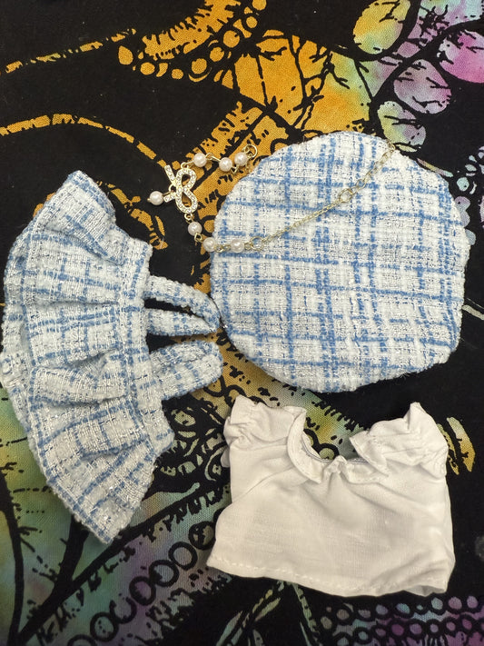 Miu Miu Purple Plaid Dress Fancy Fashion Designer Kawaii Cute Doll Outfit Clothes 17cm