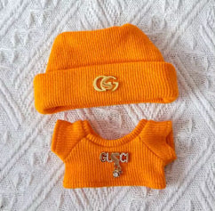 Gu cci Beige Overalls Hat Designer Fashion Kawaii Cute Doll Outfit Clothes 17cm