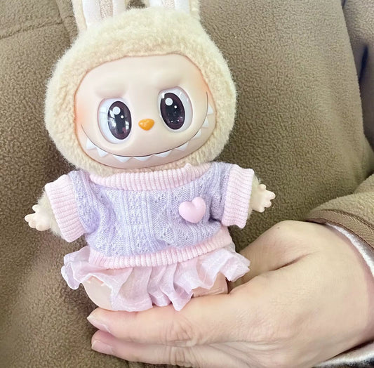 Cute Purple Pink Heart Sweater Ballerina Skirt Fashion Designer Kawaii Cute Doll Outfit Clothes 17cm