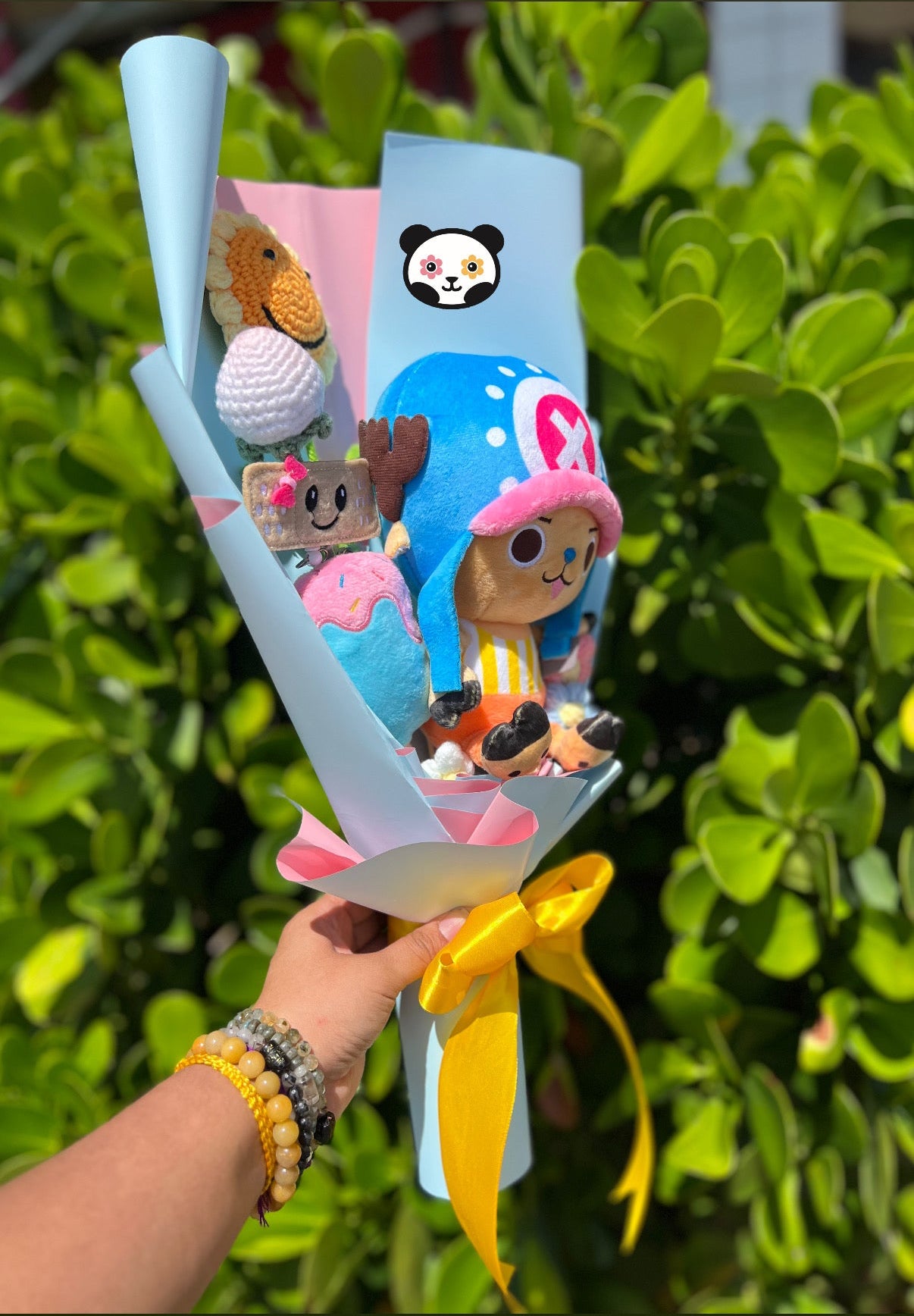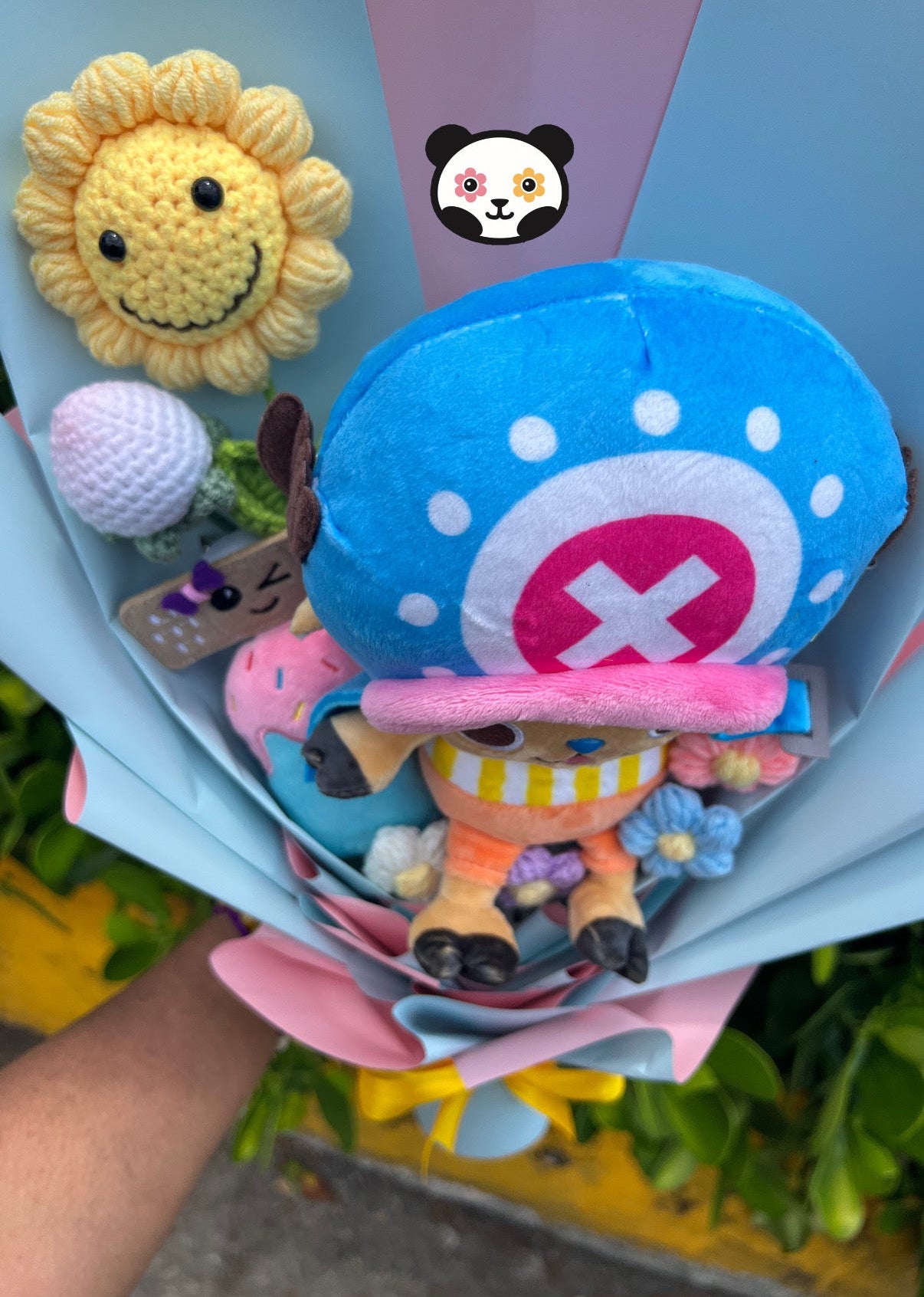 Cute Reindeer Doctor Pirate Crochet Flower Anime Plush Bouquet