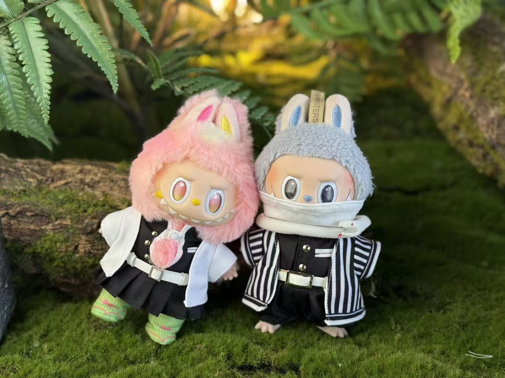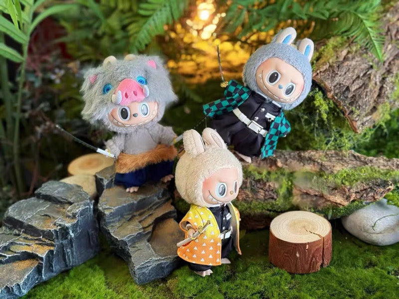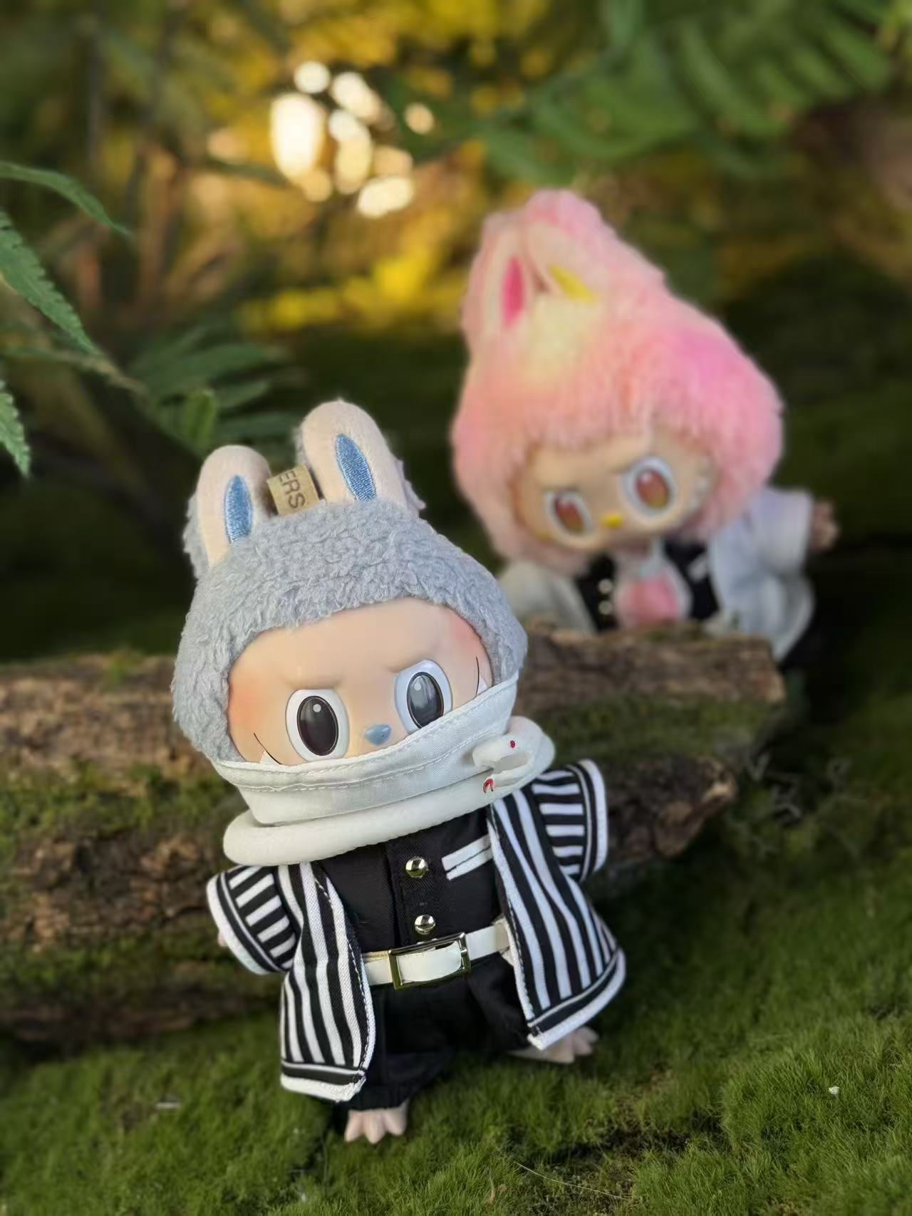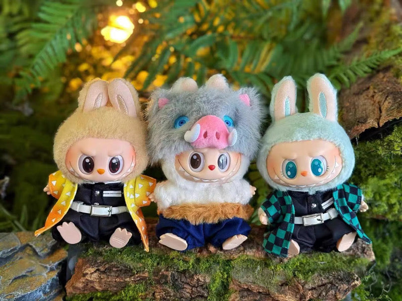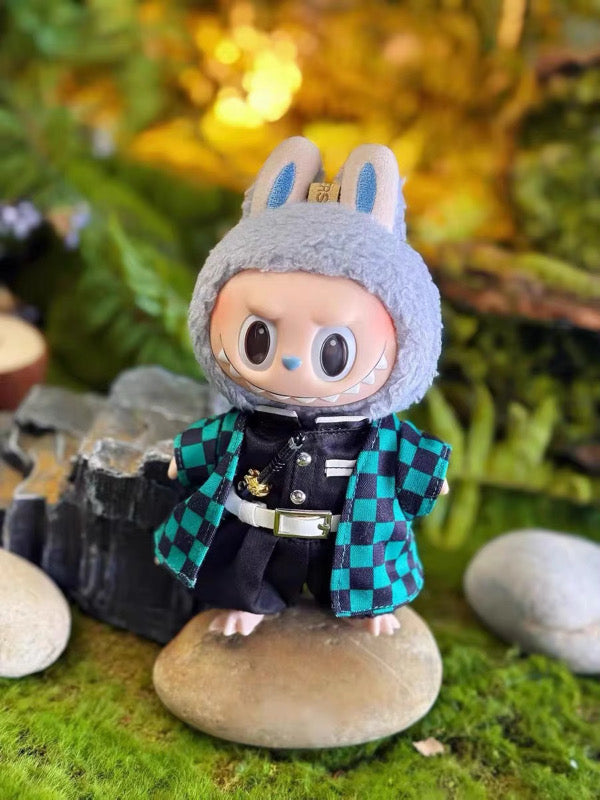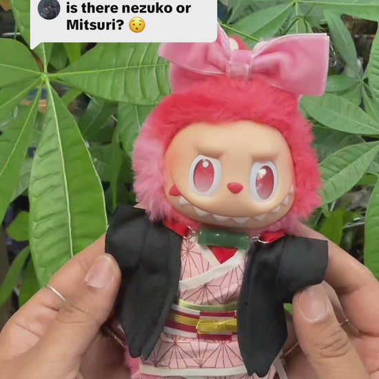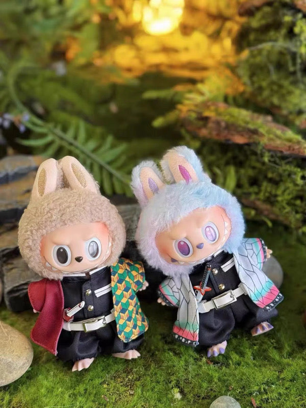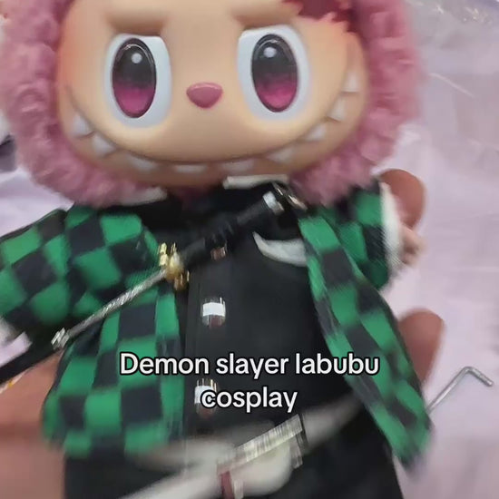 This is for one handmade inspired Costume for your 17cm doll. They’re handmade so each piece may differ slightly. I have several characters for you to choose from. I have Scar Boy that comes with a black uniform, his iconic green checkered cape and a weapon. I also have "Electric 7th Form Boy" available that includes the black uniform his iconic yellow robe and a weapon. "Boar Head Boy" cosplay comes with a boar head piece, his pants, and a weapon. The "Emo Water Bender" cosplay comes with the black uniform, his iconic robe, and a weapon. "Demon Sister" comes with her iconic kimono, black robe, pink hair bow, kimono belt, shoes, and a bamboo made from real jade. "Butterfly Girl" comes with the black uniform, butterfly robe, and a weapon. "Heart Ablaze Big Brother" includes pants, shirt, belt, his sword, and his iconic fiery flae cape. "Love Girl" comes with her dress with her iconic chest opening, white kimono, belt, and her iconic green socks. "Snake Man" comes with the shirt, pants, belt, black and white iconic stripped kimono, a face mask, and a snake. "Snowflake Demon" comes with his face tattoos, white pants, green with red tassel belt, and a pink vest. "Introverted Twin Short Guy" comes with his shirt, flared iconic pants, belt, and sword.