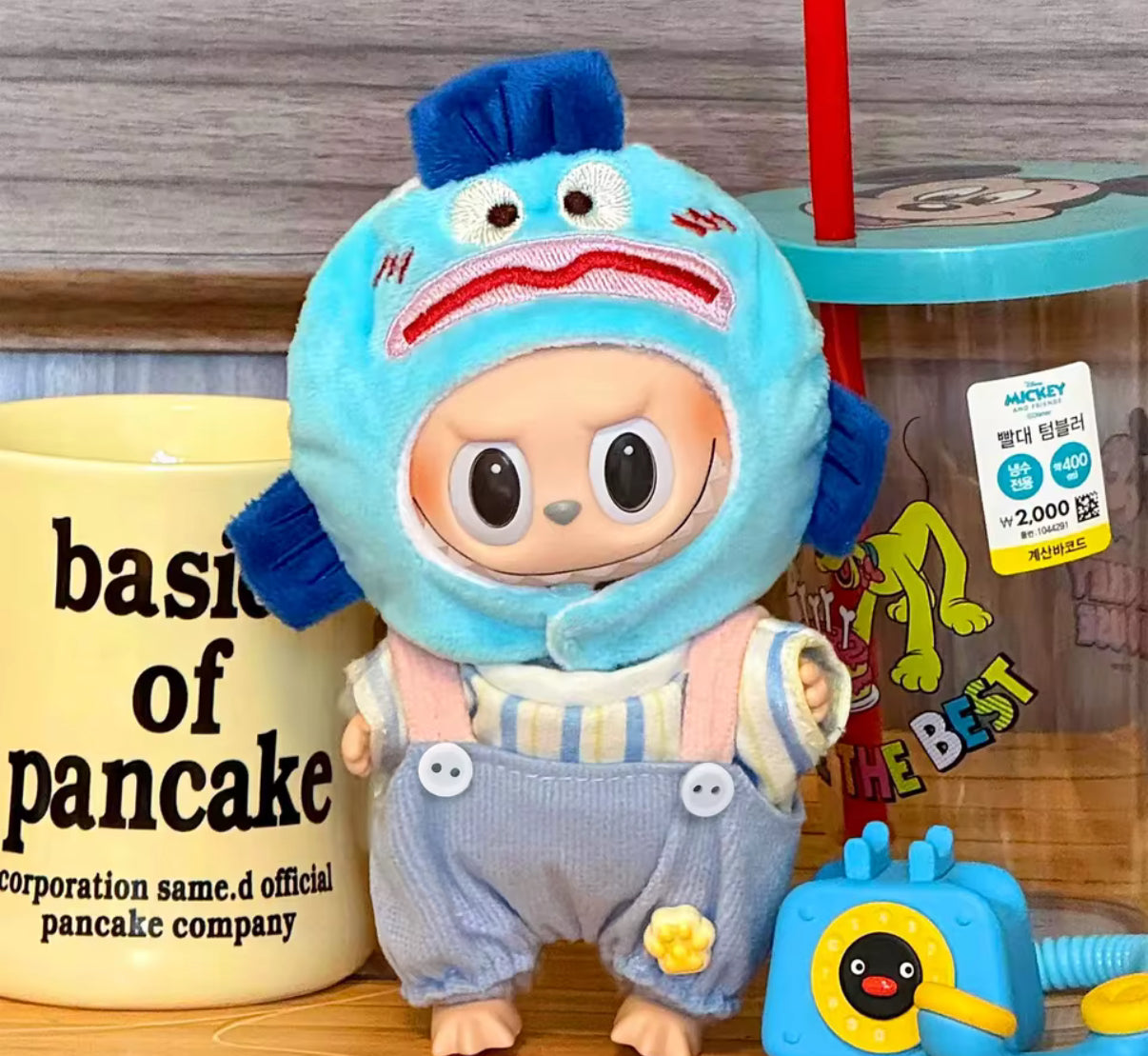 This is for one handmade hangyodon Inspired outfit costume for your Labubu or 17cm doll. The outfit comes with a hangyodon head, striped shirt, and blue shorts. They’re handmade so each piece may differ slightly.