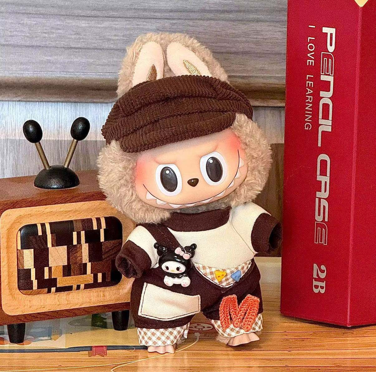 Kuromi Brown Overalls Set Kawaii Cute Doll Outfit Clothes 17cm