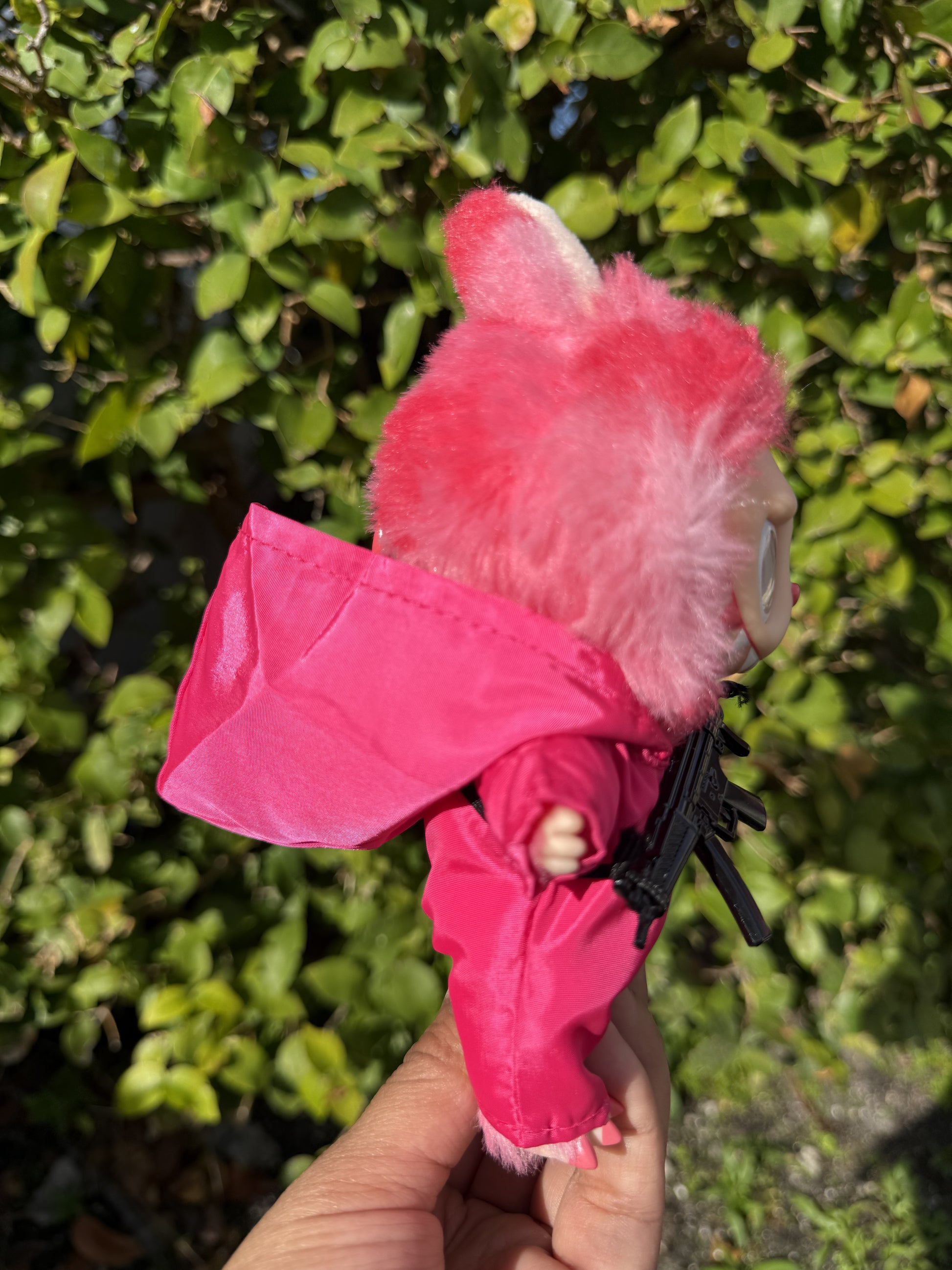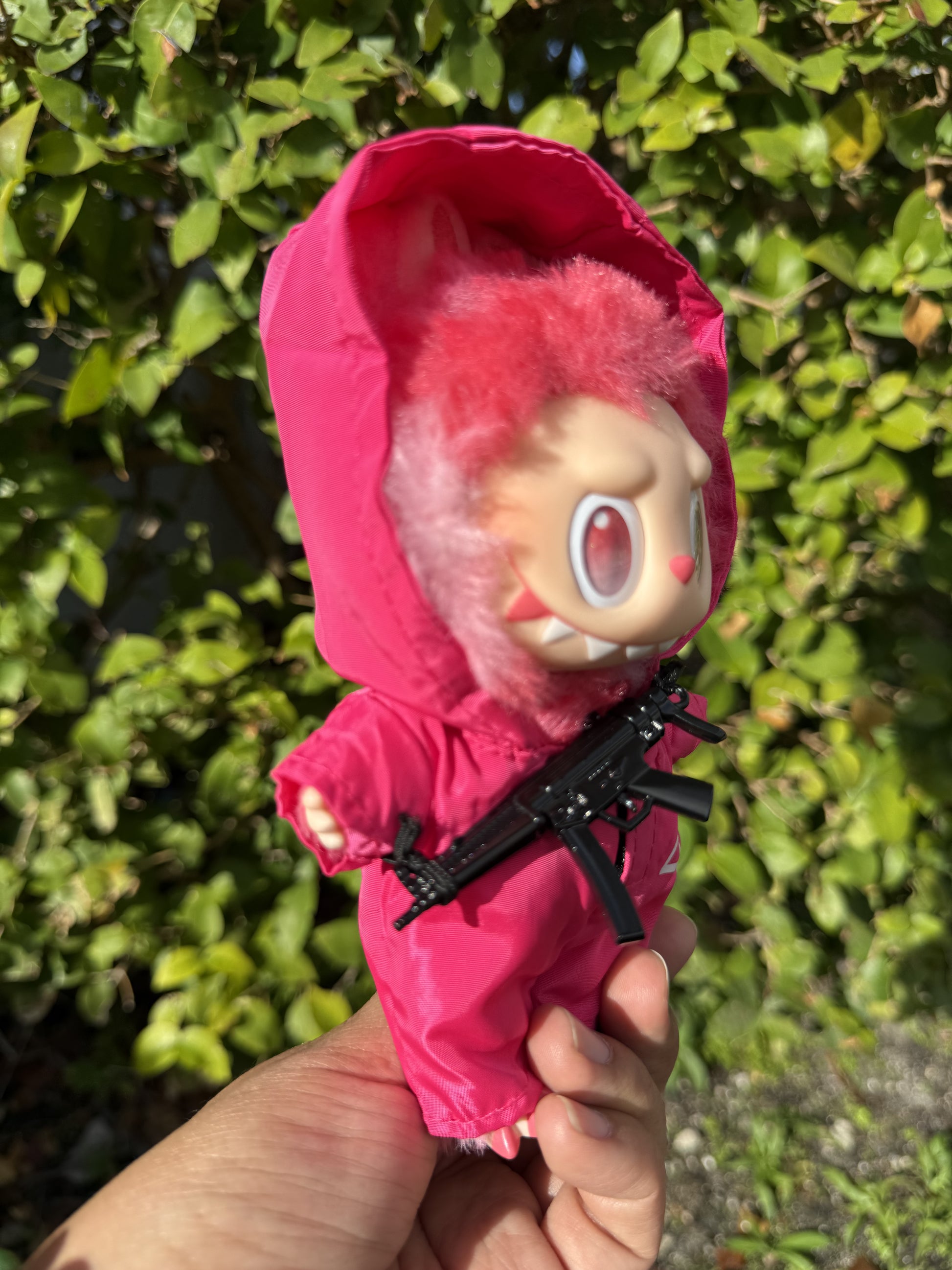 This is for one handmade Squid Game guard from Squid Games costume for your 17cm doll. The cosplay comes with pink overalls and a plastic gun. They’re handmade so each piece may differ slightly.